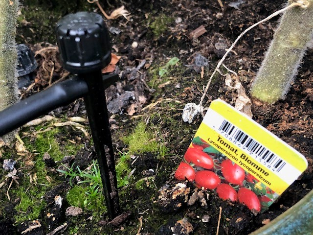 Jeg samlede en række 6mm ledninger med sprinklere og så var det bare at gå rundt og sætte dem på hovedledningerne.