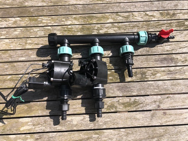 Hvis du skal bruge en WiFi kontroller til at styre vandingen, skal du også bruge en manifold og en magnet hane for hver streng.