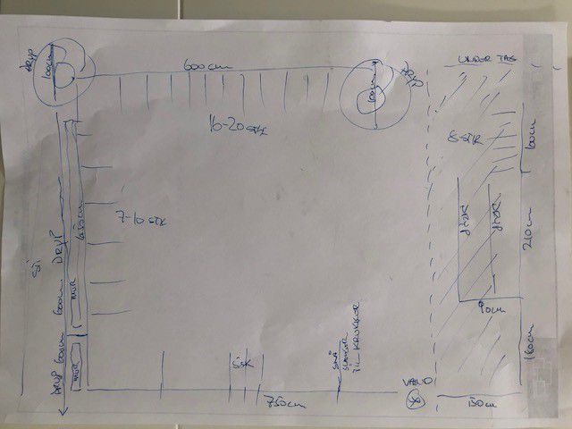 Først lavede jeg en hurtig håndtegning, over hvordan vandingssystemet skulle se ud.