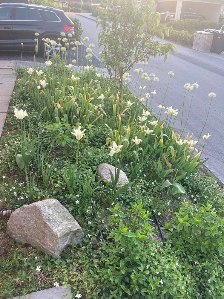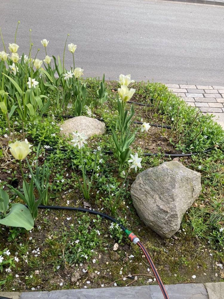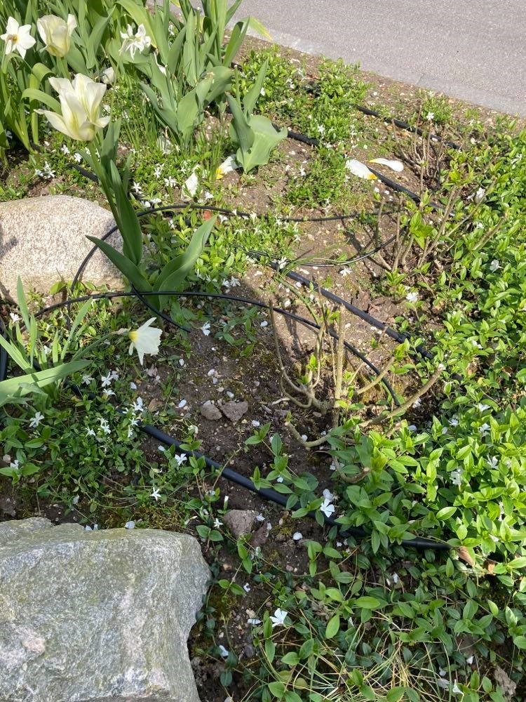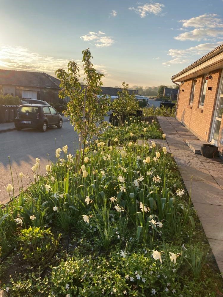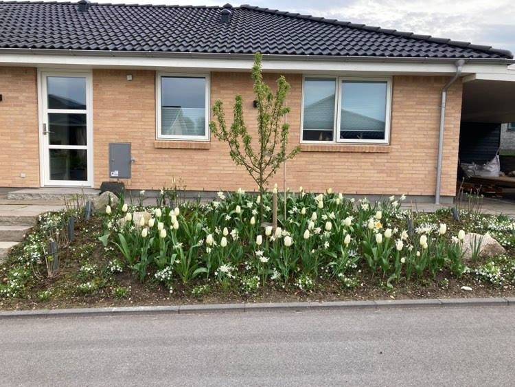 TIP: læg slangen når dine planter fylder mindst – f.eks. når stauderne er klippet ned eller før tulipanerne springer ud. Det var besværligt at navigere rundt om tulipaner og få et overblik over slangen i det fyldte staudebed