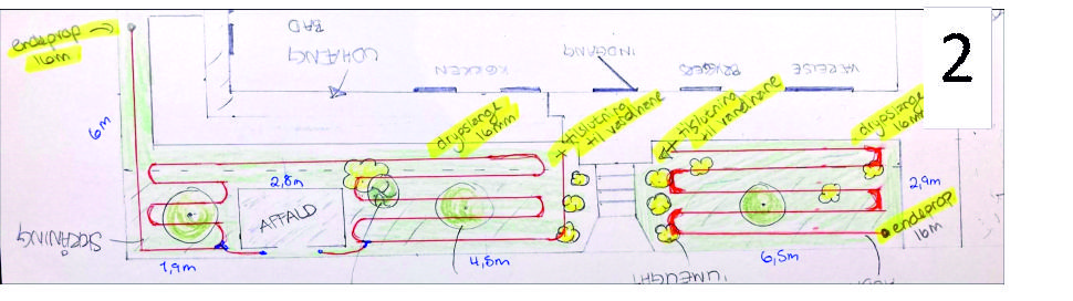 - Jeg tegnede vandsystemet for bedre at kunne visualisere hvilke elementer jeg havde brug for og kunne indsætte mål