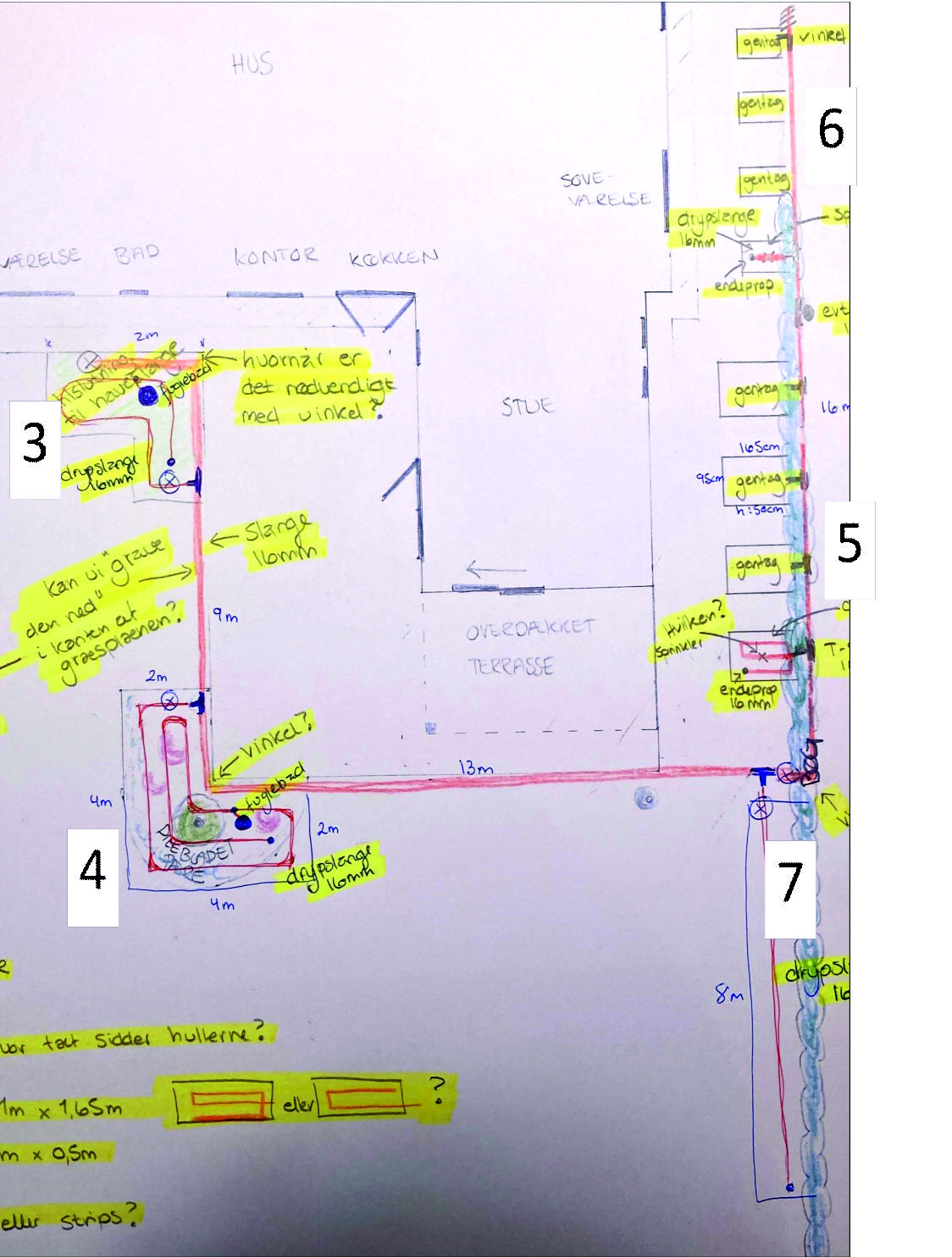 TIP: følg slange fra vandhanen til enden på din tegning og tæl op løbende (se billeder for tegninger)