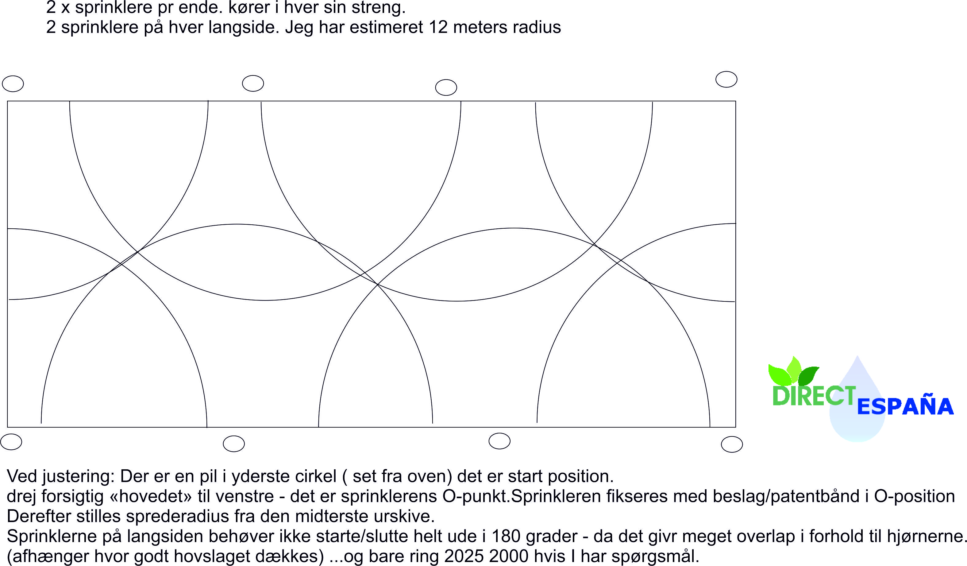 Når du skal igang med dimensioneringen af dit anlæg - så sørg for at dine hjørner kører i en streng for sig selv ( ofte 2 strenge af 2 sprinklere) - det er nødvendigt når du ikke kan placere dine sprinklere i midten af kort-banen ( her er ofte porte + indgange mv.)
